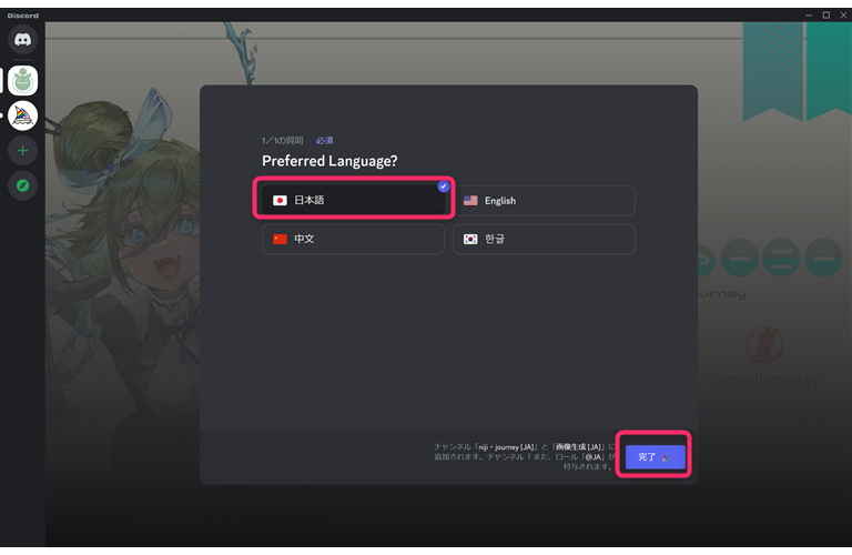 Midjourneyは、Discordでテキストを入力することになるのですが、無料版の場合