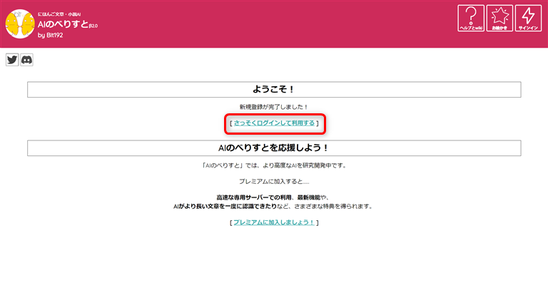 「さっそくログインして利用する」をクリック。