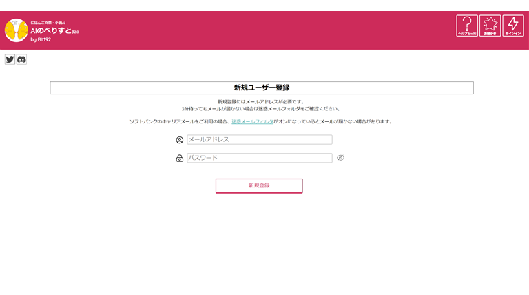 (3)メールアドレスとパスワードを入力し「新規登録」をクリックすると。