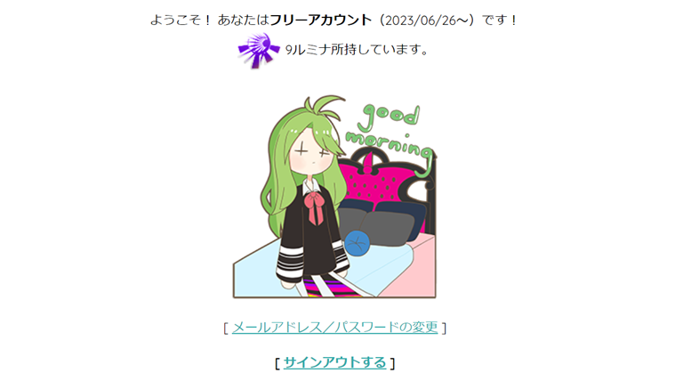 新規登録後、50ルミナ付与されていたのですが、先ほどの絵を作成したあとの残りが9ルミナでした。その為、1枚無料で描かせてもらえる程度だと思われます。