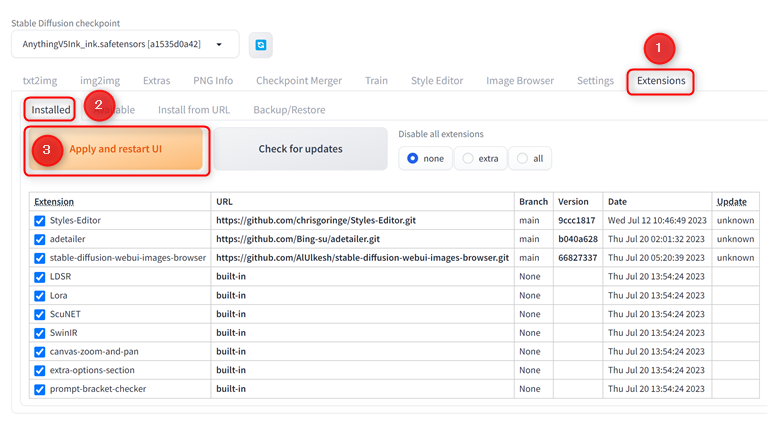 WebUIをアップデートしたり、Google Colab版のWebUIを使っている場合、拡張機能が使えなくなることがあります。